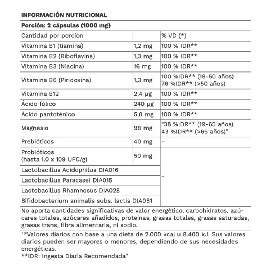 PROBIÓTICOS + PREBIÓTICOS + VITAMINAS DEL COMPLEJO B + CITRATO DE MAGNESIO