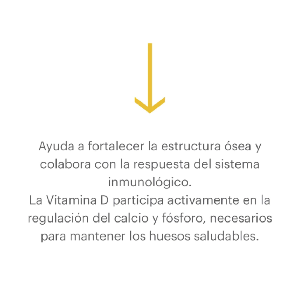Vitamina D3: Es crucial para la absorción eficiente de calcio en el intestino delgado. Esto es esencial para mantener huesos y dientes sanos y fuertes. Además, ayuda a regular los niveles de calcio y fósforo en la sangre, lo que es crucial para el funcionamiento normal de los nervios y músculos, así como para la coagulación sanguínea.